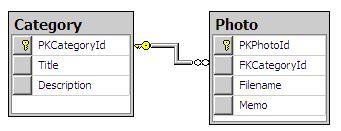 Figure 1. Two tables are defined, Category and Photo, with a foreign key linking them as shown above.